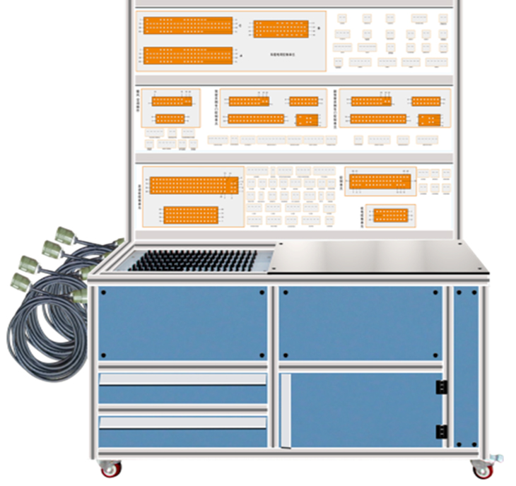 2、通過裝有與原車插頭配套插接器的線束,連接故障設(shè)置終端,故障設(shè)置終端通過專用線束連接檢測(cè)臺(tái),實(shí)現(xiàn)整車各系統(tǒng)電路教學(xué)、實(shí)訓(xùn)考核的多功能教學(xué)設(shè)備;