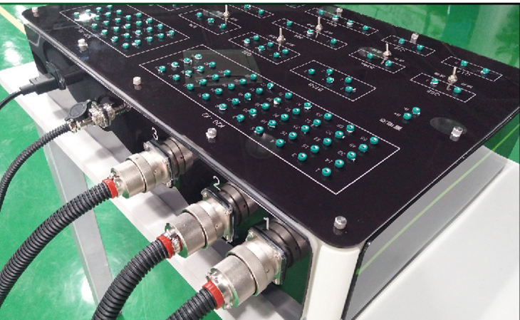 4、機(jī)械故障設(shè)置終端通過更換面板上不同功能的插件和短路跨接線實(shí)現(xiàn)斷路、線路虛接、對(duì)地短路、對(duì)正極短路故障設(shè)置,在機(jī)械故障設(shè)置終端不變的情況下更換不同的連接線束和檢測(cè)面板可實(shí)現(xiàn)不同系統(tǒng)的實(shí)訓(xùn)操作;