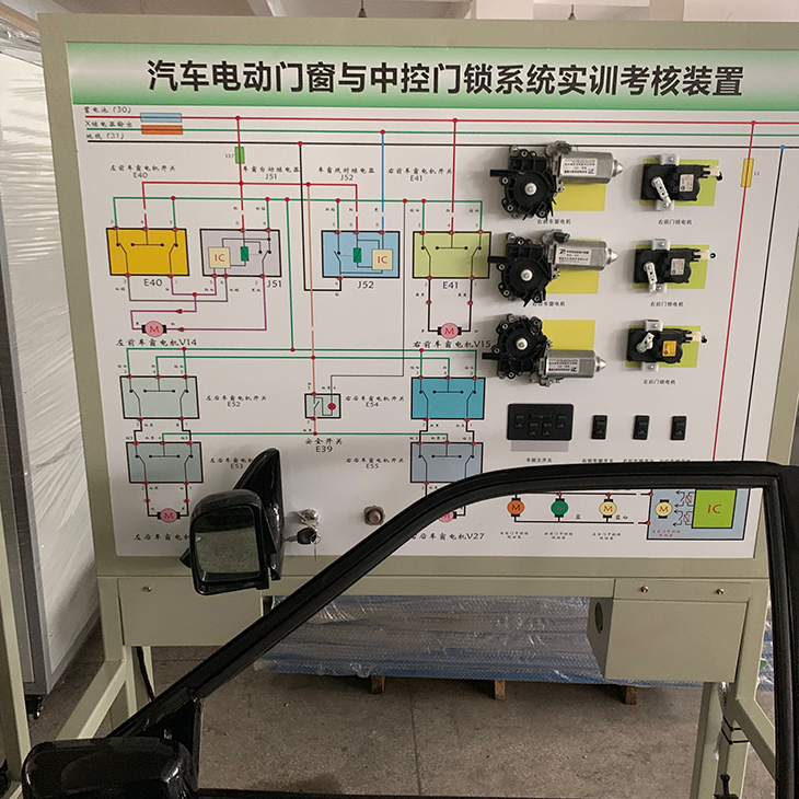產(chǎn)品選用汽車電動車窗與中控門鎖系統(tǒng)實物,展示汽車電動車窗與中控門鎖系統(tǒng)的結(jié)構(gòu)與原理;面板上繪有完整的電動車窗與中控門鎖系統(tǒng)的電路圖,設置有檢測端子,可通過儀器儀表檢測各種信號參數(shù)如電壓、電阻、頻率等。本示教板功能齊全、操作方便、安全可靠。