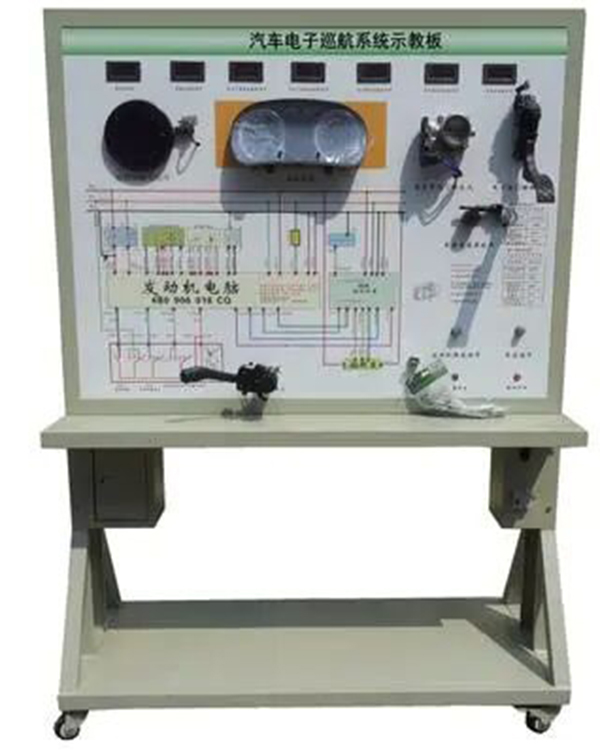 操縱油門踏板位置傳感器可實現(xiàn)節(jié)氣門開度的調(diào),可真實展示電子節(jié)氣門的工作原理和工作過程;操縱巡航控制開關(guān)和車速信號,設(shè)定巡航狀態(tài),引擎控制單元可對節(jié)氣門開度進行調(diào)節(jié),真實演示汽車電子巡航系統(tǒng)的工作過程和工作原理。
