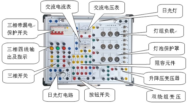 交流電路實(shí)驗(yàn)箱 主要是進(jìn)行"電工學(xué)"及"電路原理"中的強(qiáng)電部分實(shí)驗(yàn),如單相交流電路、三相電路、日光燈電路實(shí)驗(yàn)。本實(shí)驗(yàn)箱由模塊單元和元件庫相結(jié)合的板面構(gòu)成,全部采用歐洲標(biāo)準(zhǔn)的安全插座和安全實(shí)驗(yàn)導(dǎo)線, 連線方便,接觸可靠,而且壽命長、效率高,有效預(yù)防觸電隱患。實(shí)驗(yàn)面板上印有元件符號及主要參數(shù)便于學(xué)生識別。實(shí)驗(yàn)箱結(jié)構(gòu)緊湊實(shí)用直觀,安全可靠,能有效培養(yǎng)學(xué)生的動(dòng)手能力,維修方便、簡捷?蓾M足各類高、中等院校及職業(yè)技術(shù)類院校開設(shè)的電工典型實(shí)驗(yàn)。