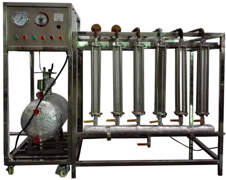 紫銅傳熱管道(銅裸管、涂黑管、翅片管、玻璃絲棉保溫管、鋸末保溫管、鍍鉻管各一組),調(diào)節(jié)閥門組,蒸汽發(fā)生器,熱風幕風機,壓力控制器及溫度保護裝置,不銹鋼臺架及控制屏等。
