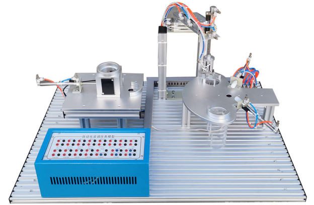 該任務由氣動機械手、分揀機構、上料機構、安裝網(wǎng)孔板、電氣接口板、電磁閥組等組成,安裝網(wǎng)孔板由有1.2mm優(yōu)質(zhì)不銹鋼鋼板加工制作,機構件由鋁材機加氧化而成,機構全部為散件提供,按教學要求由學員自己動手組裝、接線并通過接口板與外部連接調(diào)試。