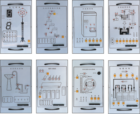 該裝置是為了配合PLC可編程控制器實(shí)驗(yàn)臺使用而設(shè)計(jì)的外接演示裝置。它由LED發(fā)光二極管、大型LED數(shù)碼管、直流電機(jī)、步進(jìn)電機(jī)等執(zhí)行機(jī)構(gòu)用其他外圍電路模擬實(shí)際工業(yè)控制過程中的狀態(tài),它形象生動的演示了PLC的整個執(zhí)行過程。通過該裝置,可以鍛煉學(xué)生的動手能力,能夠形象生動的執(zhí)行機(jī)構(gòu)驗(yàn)證自己編寫程序的正確性,掌握PLC的實(shí)際應(yīng)用,增強(qiáng)學(xué)生對PLC的學(xué)習(xí)興趣。演示掛箱后蓋由鋁合金注塑而成,箱體結(jié)構(gòu)合理,工藝先進(jìn),美觀大方。該裝置在演示屏上位置可任意移動、互換。