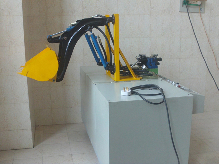 3、裝載機械按實物比例縮小的全金屬結(jié)構(gòu),實驗時啟動液壓系統(tǒng)根據(jù)實驗要求模以操作機械進行工作。