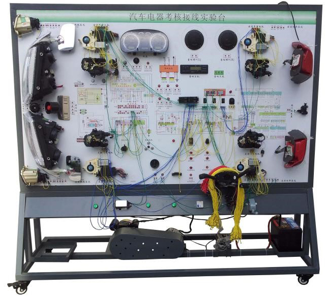 3.設備面板采用耐創(chuàng)擊、耐污染、防火、防潮的高級鋁塑板,表面經(jīng)特殊工藝噴涂底漆處理;面板打印有永不褪色的彩色電路圖;學員可直觀對照電路圖和實物,認識和分析汽車整車電器各系統(tǒng)的工作原理。