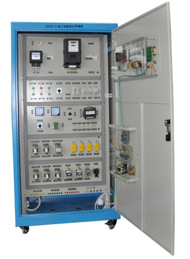 電工技能實訓(xùn)考核裝置是按照勞動和社會保障部頒發(fā)的"工人等級標(biāo)準(zhǔn)"和"職業(yè)技能鑒定"規(guī)范要求而研制的,它是集培訓(xùn)、實操和鑒定為一體的多功能設(shè)備。裝置采用工業(yè)標(biāo)準(zhǔn)配電柜為主體,充分利用柜體的雙面空間,并進(jìn)行合理布局,配置可靠的元器件?梢酝瓿伞豆S電氣控制》、《電機拖動》及儀表照明電路的實訓(xùn)教學(xué)。同時也滿足維修電工的初、中、高級技能考核內(nèi)容要求。
