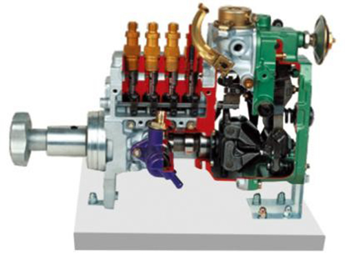 1.采用翻新柴油機12缸柱塞式高壓噴油泵一調(diào)速器總成(附件齊全)進行解剖,各零部件齊全,能夠全面的展示總成的內(nèi)外結(jié)構。