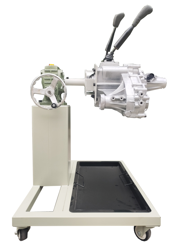 采用減速翻轉(zhuǎn)機構(gòu),可使變速器旋轉(zhuǎn)任意角度,并能任意位置鎖止,便于學(xué)生從不同的角度進(jìn)行拆卸和裝配。