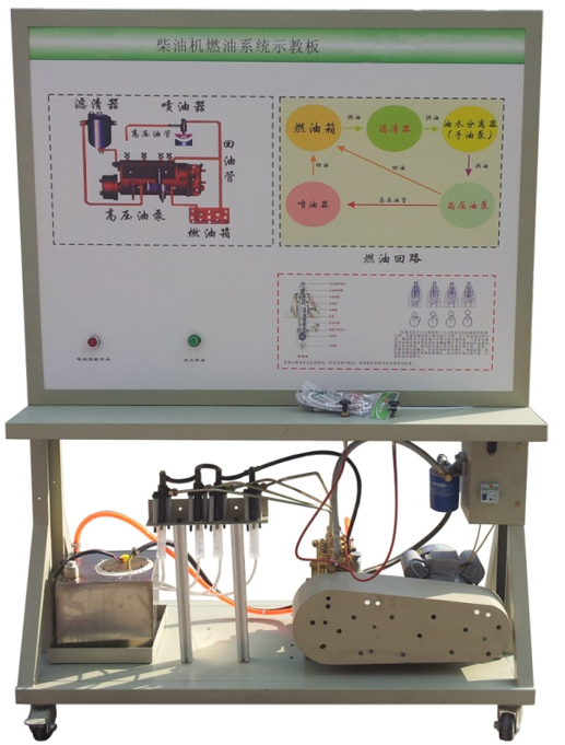2.示教板面板采用耐創(chuàng)擊、耐污染、防火、防潮的高級鋁塑板,表面經(jīng)特殊工藝噴涂底漆處理;面板打印有永不褪色的彩色電路圖與工作原理示意圖;學(xué)員可直觀對照電路圖和實(shí)物,認(rèn)識和分析柴油發(fā)動(dòng)機(jī)燃油噴射系統(tǒng)的工作原理。