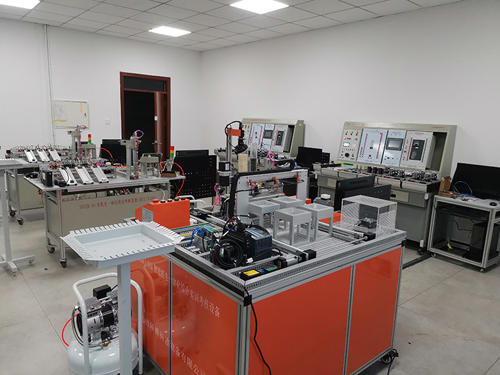 機(jī)電一體化實驗實訓(xùn)裝置、PLC與自動化實驗實訓(xùn)室設(shè)備自動化生產(chǎn)線實訓(xùn)室、氣動控制實訓(xùn)室、伺服控制實訓(xùn)室、過程控制實訓(xùn)室、仿真控制實訓(xùn)室、自動化創(chuàng)新工作室等;能提供可編程控制技術(shù)、交流伺服驅(qū)動技術(shù)、人機(jī)界面技術(shù)、多自由度機(jī)械臂技術(shù)、網(wǎng)絡(luò)控制技術(shù)、自動化物流管理、虛擬仿真等自動化領(lǐng)域核心技術(shù)的實踐訓(xùn)練;教學(xué)項目涵蓋單項技能訓(xùn)練、綜合技能提升、創(chuàng)新設(shè)計能力培養(yǎng)、自動化新技術(shù)應(yīng)用等多個層面,為滿足學(xué)生技能訓(xùn)練、教師實踐能力培養(yǎng)、企業(yè)員工培訓(xùn)、技術(shù)研發(fā)與服務(wù)提供了有力保障。機(jī)電一體化實驗實訓(xùn)平臺、PLC與自動化實訓(xùn)室設(shè)備是《PLC控制技術(shù)》、《變頻器控制技術(shù)》、《組態(tài)控制技術(shù)》等課程的教學(xué)實驗實訓(xùn)、課程設(shè)計、自動化綜合實訓(xùn)及創(chuàng)新設(shè)計等實踐基地,也是技能培訓(xùn)的教學(xué)平臺。滿足學(xué)生進(jìn)行PLC實訓(xùn)、課程設(shè)計、畢業(yè)設(shè)計等需求。機(jī)電一體化實驗實訓(xùn)平臺、PLC與自動化實訓(xùn)室設(shè)備主要功能是為學(xué)生提供可編程邏輯控制器(PLC)的相關(guān)實訓(xùn)與實訓(xùn)操作環(huán)境,幫助學(xué)生深入理解PLC的工作原理、編程方法、以及在工業(yè)自動化領(lǐng)域的應(yīng)用。