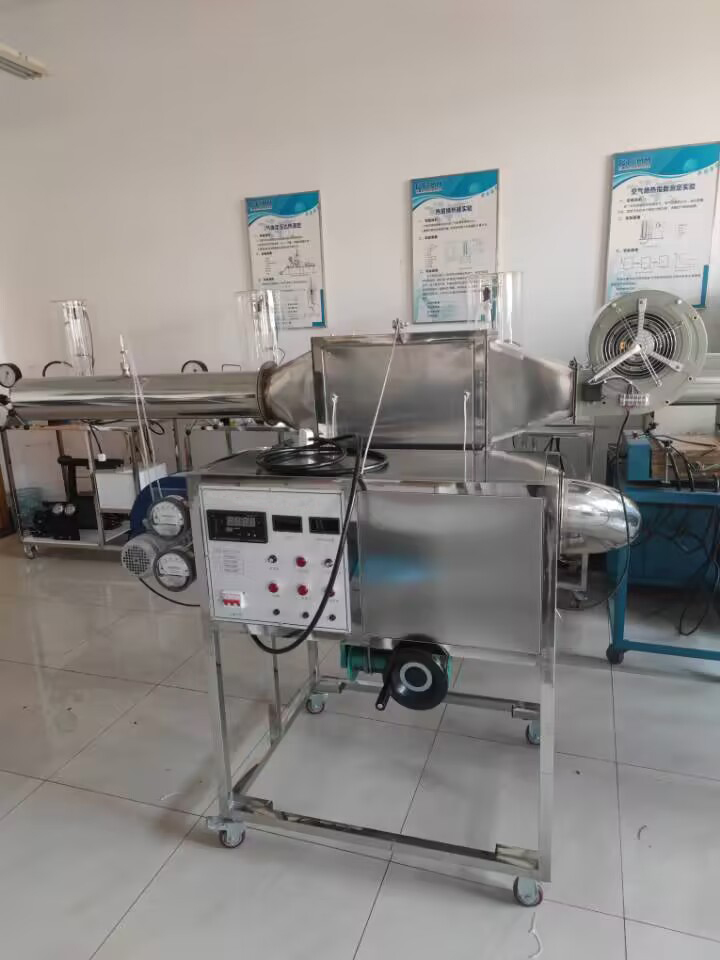 翅片管式熱管換熱器,加熱段循環(huán)加熱風道,被加熱段加熱風道,鼓風機,風機,笛形管流量計配差壓傳感器,加熱由固體調(diào)壓模塊無級調(diào)節(jié),信號輸入巡檢儀顯示溫度、壓差,電流表,電壓表,不銹鋼臺架及控制屏等。